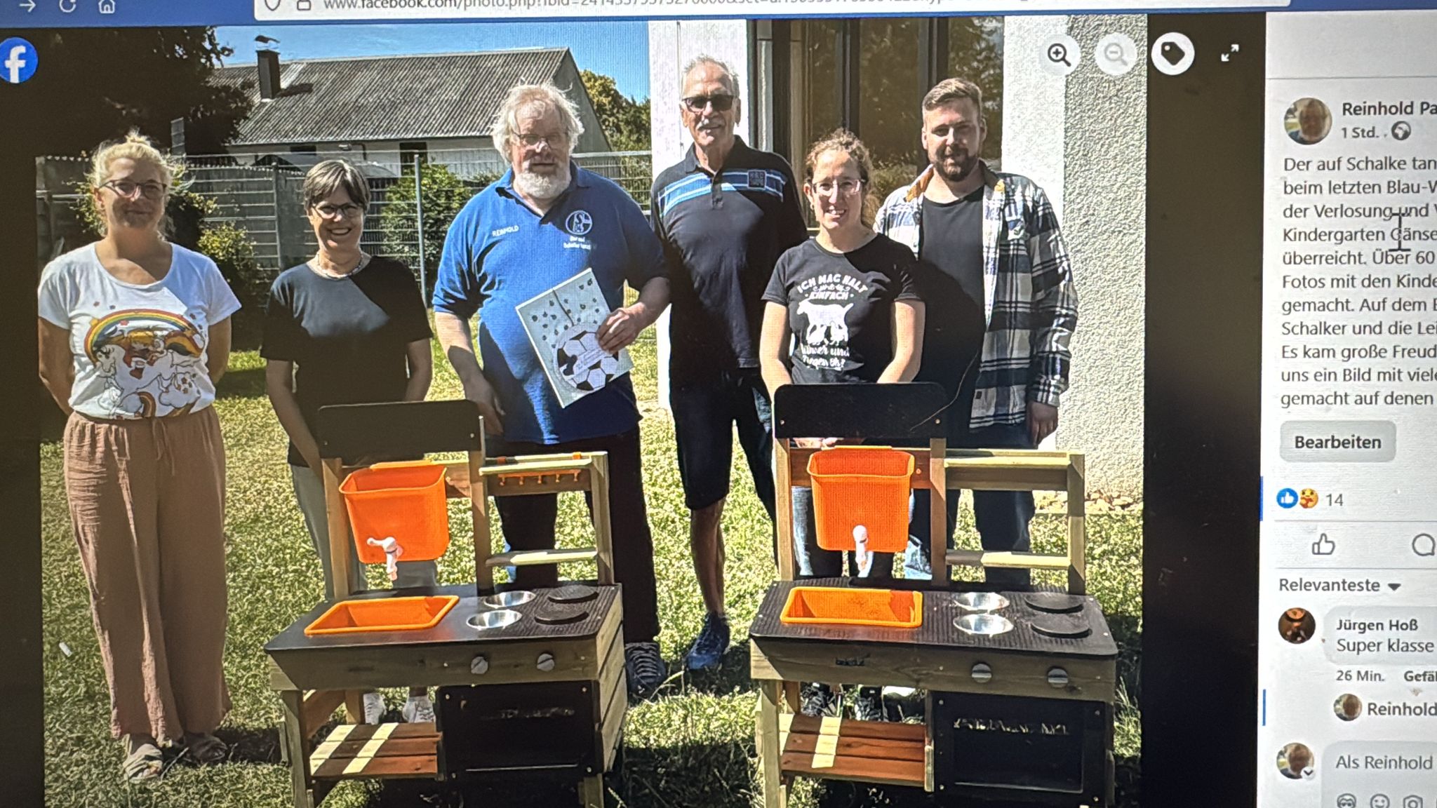 Der auf Schalke tanzt e.V. (Schalkefanclub) hat beim letzten Blau-Weißen Tag die ersten Erlöse der Verlosung und Versteigerung an den Hovener Kindergarten Gänseblümchen (2 Spielküchen) überreicht. Über 60 kinder werden da betreut. Fotos mit den Kinder wurden absichtlich nicht gemacht. Auf dem Bild ist der Vorstand der Schalker und die Leitung des Kindergartens.