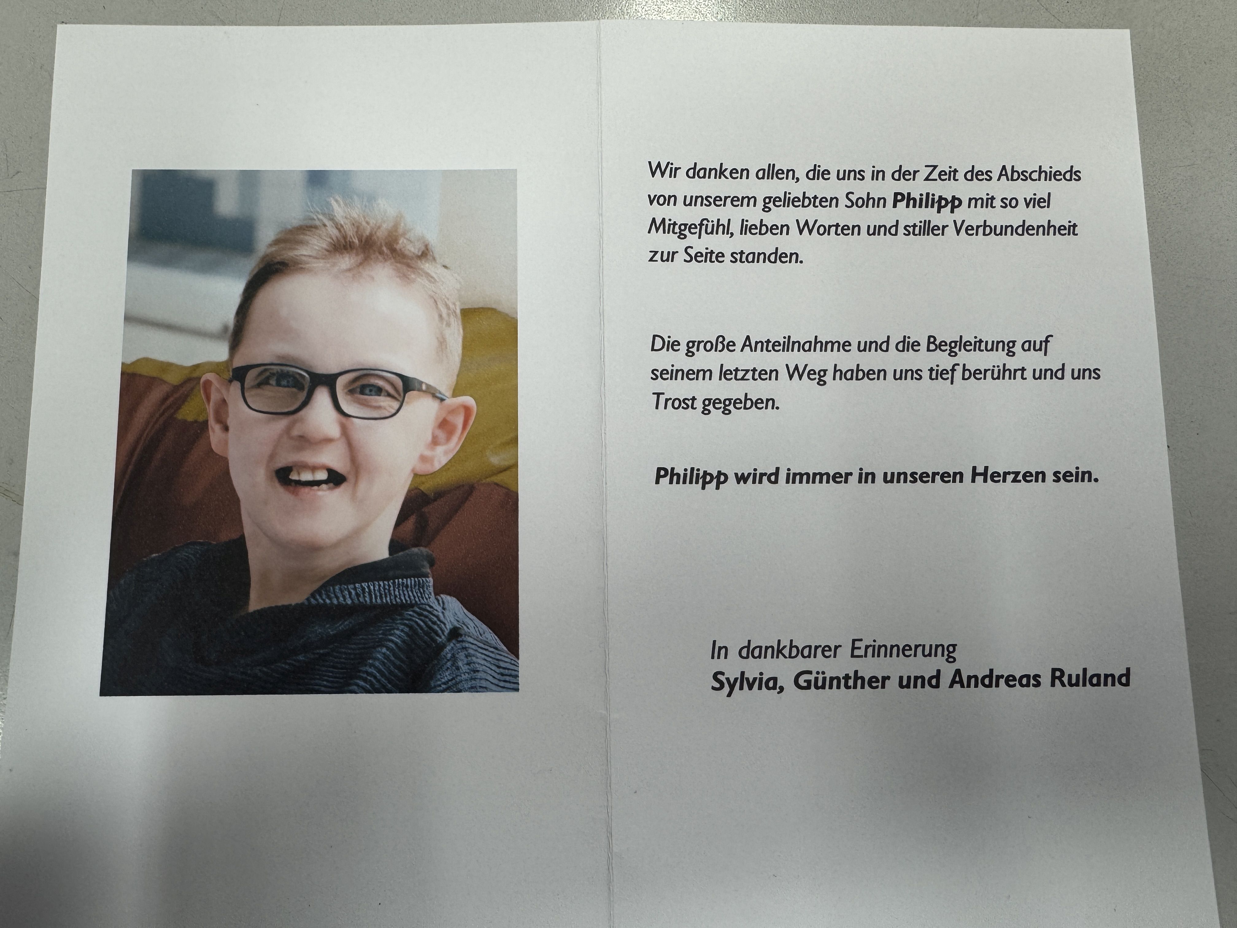 Ein ganz besonderer Dank gilt allen, die Philipp auf seinem letzten Weg begleitet haben.
